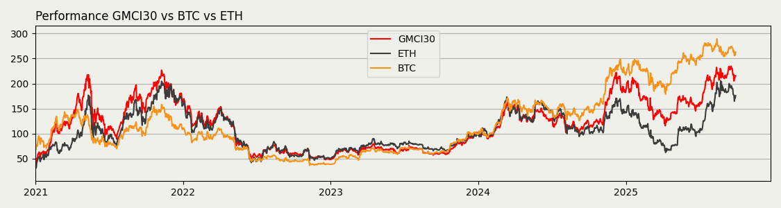 The “GMCI 30” represents a selection of the top 30 cryptocurrencies, showcasing the giants of the digital asset world. By focusing on the leading tokens, this index offers a snapshot of the market’s core strength and the primary drivers of the cryptocurrency market. With stalwarts like Bitcoin and Ethereum, the index provides a solid foundation for understanding the crypto landscape.